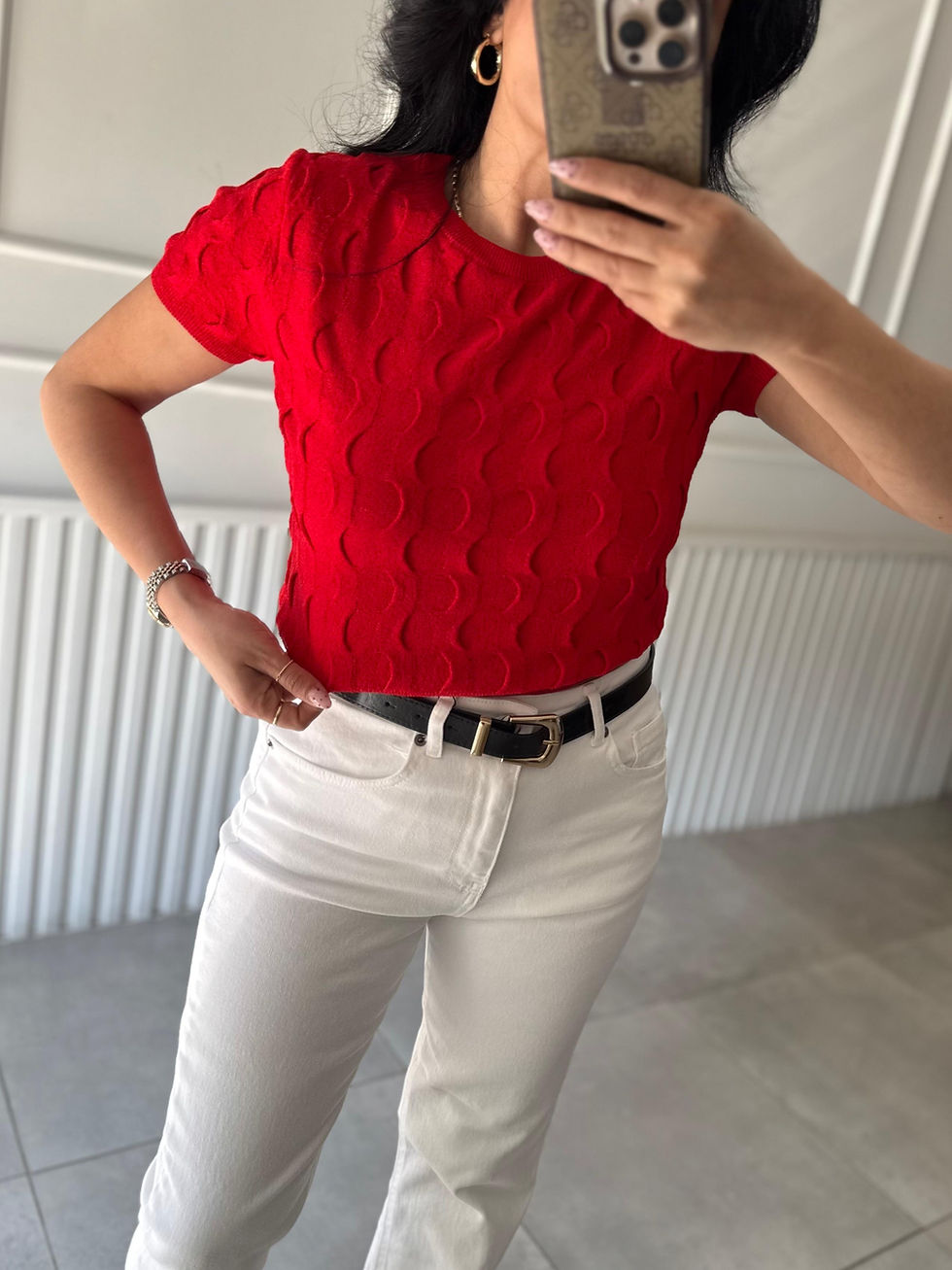 Basic tişört, crop bluz veya oversize gömleklerle kolayca kombinlenebilir.